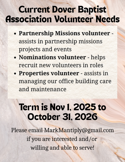 Be a Dover Baptist Association prayer warrior by following our weekly prayer focus calendar featured below.